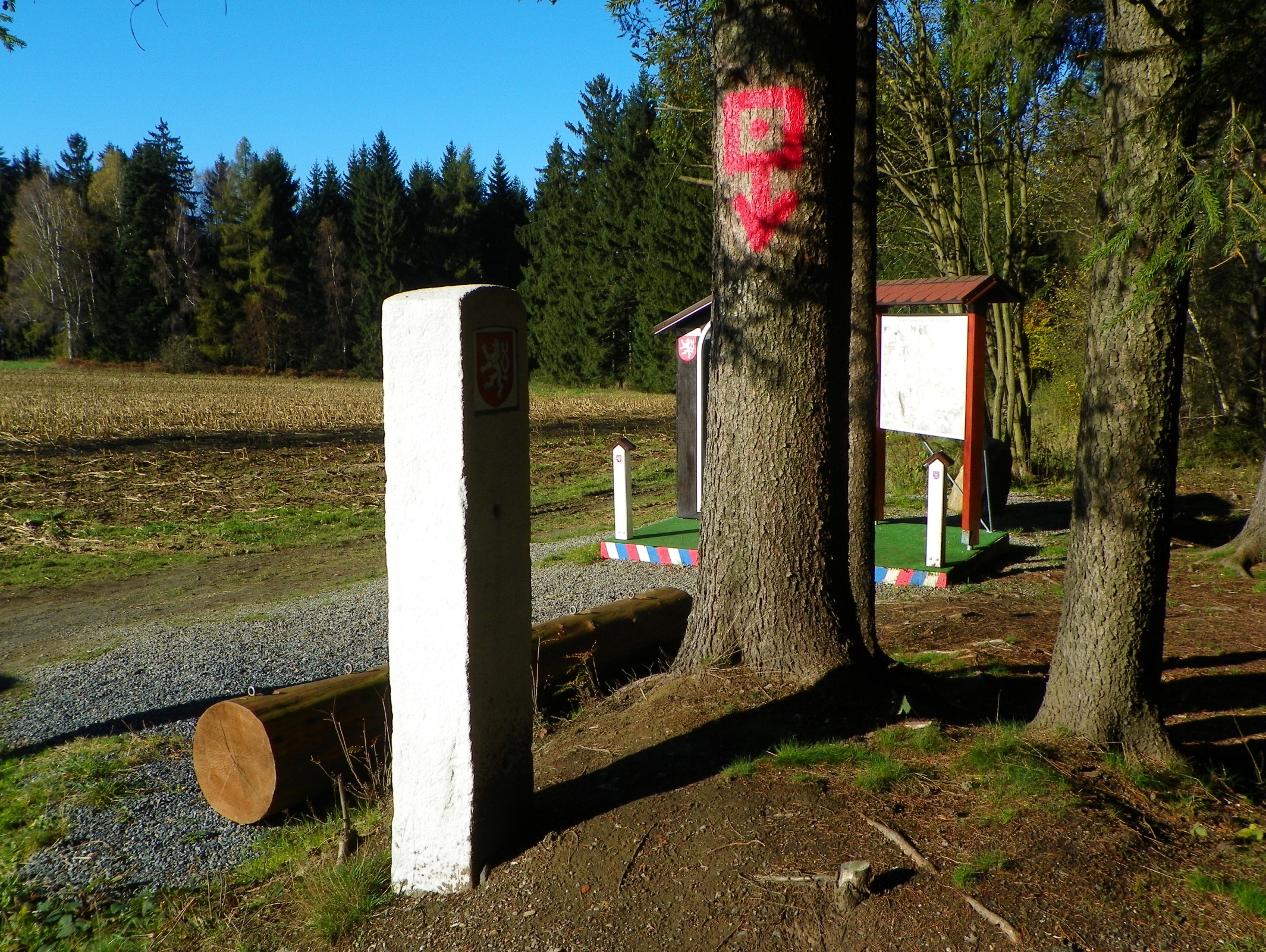 Poloha hraničního kamene u Sirákova: 49°30'25.248"N, 15°50'28.235"E