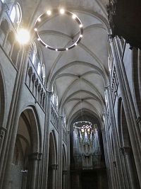 První fáze výstavby současné katedrály sahá až do roku 1160. Vzhledem k tomu, že tato musela být v následujících staletích mnohokrát přestavována (zejména po požárech), je dnes považovaná za svatostánek kombinující románský sloh s gotikou i neoklasicismem. V polovině 16. století, bohužel, nástup reformace zbavil interiér veškeré výzdoby a ušetřena byla pouze vitrážová okna. A o dvě století později středověká fasáda ustoupila současnému neoklasicistnímu stylu.