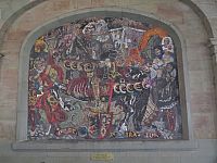 Horní část budovy obtáčí vlys se zpodobněním důležitých úseků městských dějin, např. prvního koncilu, který se zde konal za římské nadvlády; konverzi ke křesťanství vedenou biskupem Izákem v roce 410; stavbu katedrály sv. Petra v letech 1160 až 1252, nástup reformace, pokus vévody Savojského dobýt Ženevu v roce 1602 nebo připojení Ženevy ke Švýcarské konfederaci roku 1814. Jedná se o dílo, které na konci 19. století vytvořil Gustave Henri Bouthillier de Beaumont.