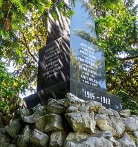 Spodní část obelisku tvoří hranolová část s výčtem obětí velké války 1914–18. Jména jsou umístěna po stranách i v čelní části hranolu.
