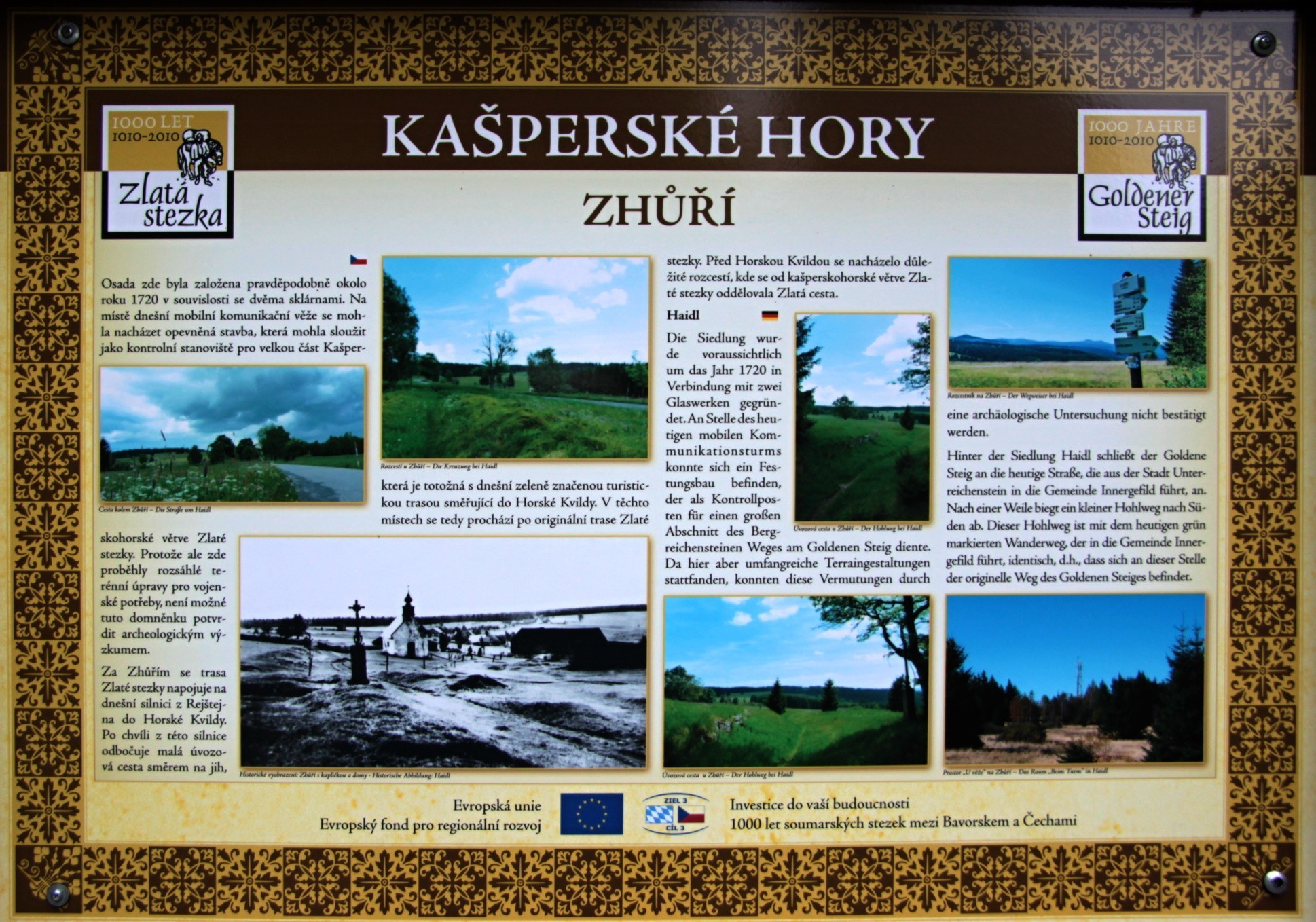 Historie tohoto místa začala již ve 14. století, kdy těmito místy vedla Zlatá stezka kašperskohorská. Na úbočí Huťské (Zhůřské) hory stála věž pro ochranu stezky.