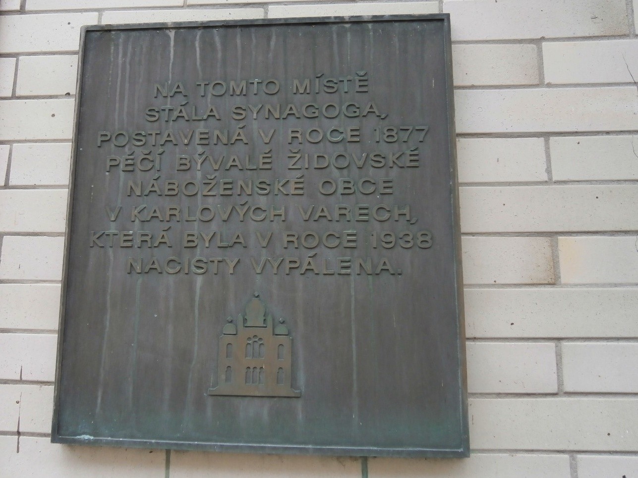 V roce 1956 byl na místě zbourané synagogy postaven pomník obětem nacistické hrůzovlády a padlým ve druhé světové válce. Později byl však přemístěn na místní hřbitov, jelikož zde byl v polovině osmdesátých let vybudován hotel Družba (dnes Bristol). Na budově hotelu (na levé straně) se nachází skromná pamětní deska jako připomínka synagogy.V devadesátých letech byl na malém prostranství v Sadové ulici (cca 50 metrů výš a vlevo) postaven Památník, připomínající osudy židovské obce v Karlových Varech.