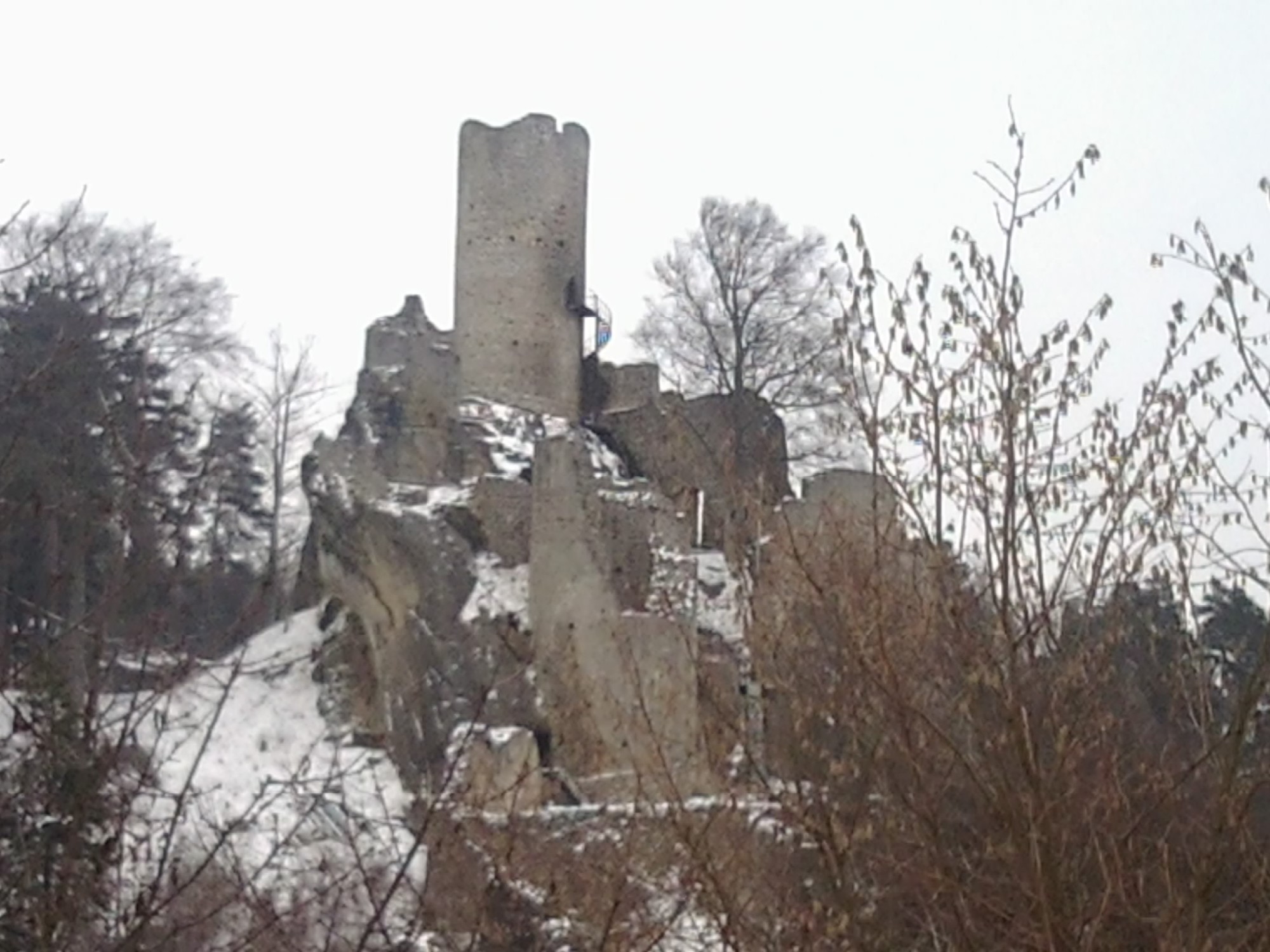 Dominantou hradu je zachovalá velká hradní věž, postavená na nejvyšší pískovcové skále, odkud je vidět na celé údolí. Věž měří 15 m, průměr 9 m a 2 m tlusté zdivo.
