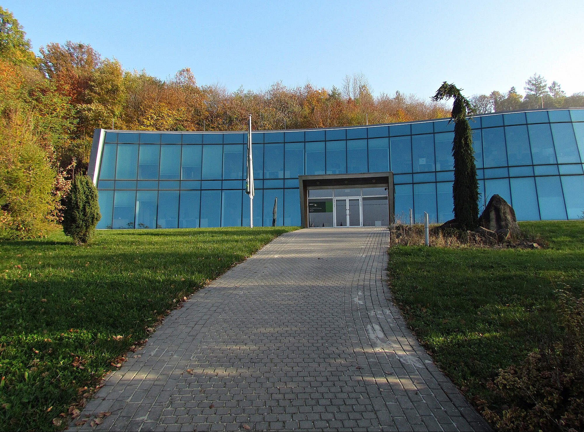 Moderní budova zaujme svou krásnou, modře prosklenou fasádou, jenž působí na pozorovatele velmi příjemným dojmem. Zvenčí ale při pohledu na neprůhledné sklo už nepoznáme, že se jedná o dvoupodlažní objekt. Konstrukce obou se od sebe přitom liší. Zatímco první sestává z kombinovaného zdiva s monolitickým betonem, druhá je dřevostavbou a její dřevěná konstrukce je doplněna o dřevěné rámy. Ty se skládají ze skrytých dřevěných sloupků ve vnitřních i obvodových stěnách. Stropnice tvoří průvlaky z lepeného lamelového dřeva. Podél prosklené fasády je konstrukce nesena obloukovým průvlakem kopírujícím zakřivený tvar budovy.