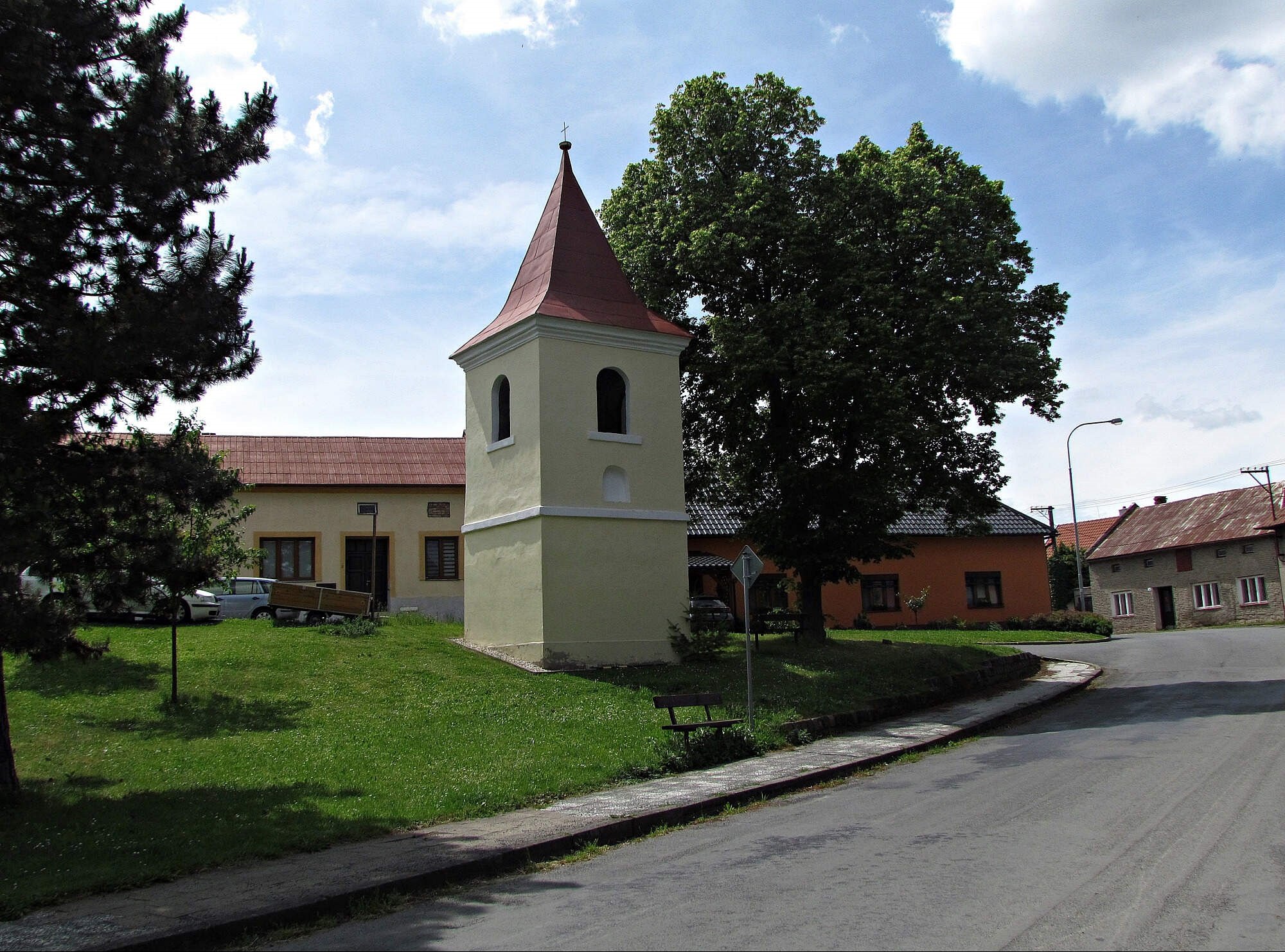 Přímo v obci na pěkně upravené návsi si můžeme prohlédnout zděnou zvonici, vystupující ze svahu nad silnicí do Holešova a na protější straně veřejného prostranství starobylý kamenný kříž. Bližší údaje o vzniku obou památek nejsou na webu k nalezení. Dle krucifixu, který je naprosto stejný jako ten klasicistní, jenž jsem viděl v blízkých Martinicích, se ale domnívám, že vznikl rovněž někdy v druhé půli 19.století.