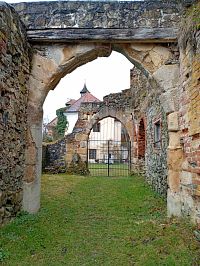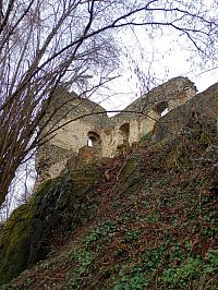 Od hlavní silnice podél velké sýpky se dostanete k hradní bráně.Vrata jsou však zavřená. Ke zřícenině se dostanete odbočením od vrat vlevo ( je zde i ukazatel)