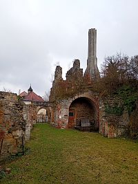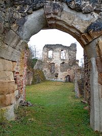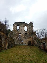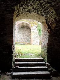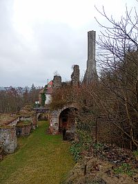 Po chvíli už se můžete projít mezi zbylými zdmi , kterým jednoznačně dominuje komín od kuchyně, ta je také přístupná, dostat se můžete i do "prvního patra"a k samotnému komínů dojít a rozhlédnout se nad vesnicí.