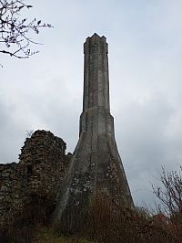 Kulturní památka, se tyčí nad stejnojmennou vesnici ve výšce 460 m.n.m.