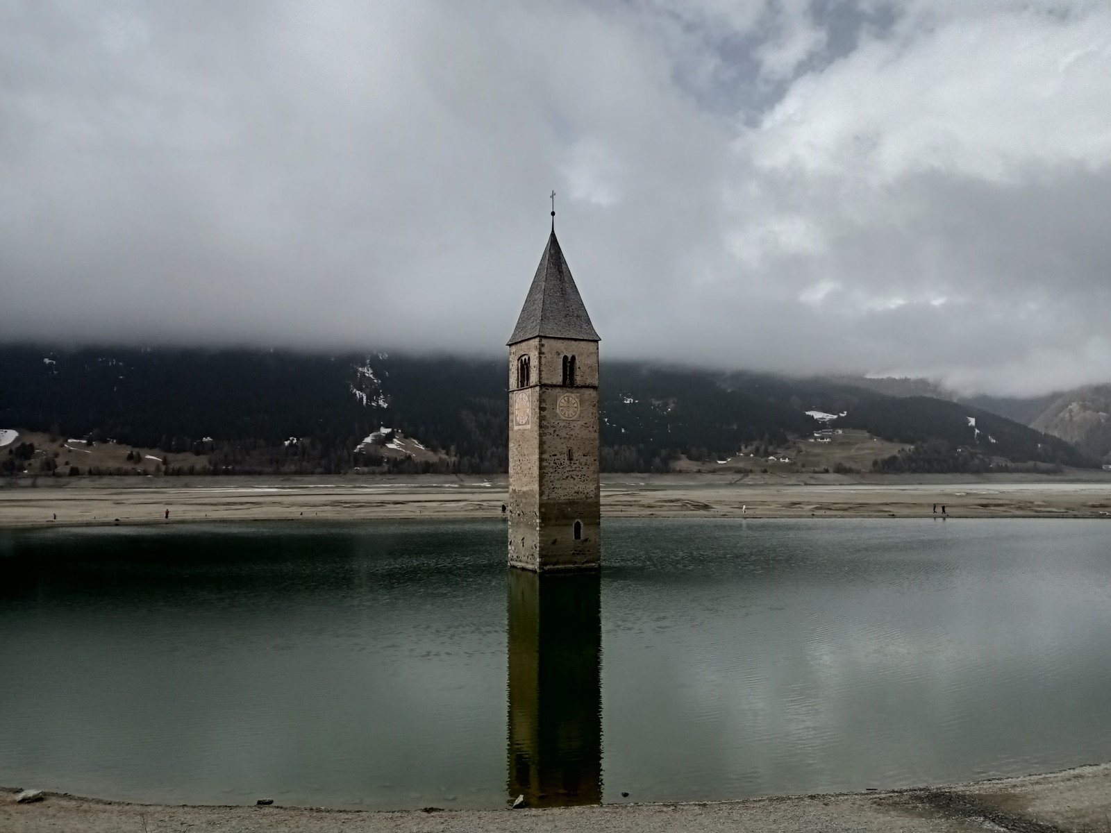 Tak začnu od začátku. Už dlouho bylo mým cílem jedno krásné jezero ( ona je to vlastně přehrada) v Itálii u hranice s Rakouskem a Švýcarskem. Oním jezerem je Lago di Resia. Proto na letošní velikonoční svátky bylo jasno, kam vyrazíme. Jenže ono jezero bylo kvůli opravě hráze vypuštěné skoro celé, pouze kolem věže kostela bylo trochu vody. Dalším cílem bylo velmi fotogenické jezero Carezza u Bolzana, které bohužel bylo zamrzlé a ony úchvatné výhledy na zasněžené vrcholky hor, které se odrážely na tyrkysové hladině jezera...tak ty se nekonaly. Jezero zamrzlé a ony krásné výhledy vystřídaly dešťové mraky. No nic, ještě pořád zbývala naplánovaná návštěva archeologického muzea v Bolzanu, kde je vystavena mumie světoznámého " ledového muže Ötziho". No ale i to se nekonalo, jelikož v době naší návštěvy vydatně pršelo a u muzea byla fronta dlouhá jak týden. Musím přiznat, že ten den už bych vzteky brečela. Ale na to nebyl čas a hledali jsme alternativní řešení. Byť mě moc mrzí, že nám opravdu počasí nevyšlo a přišli jsme nejen o nádherné výhledy. Protože nám , až na pár světlých momentů ( spíše minut) pořád pršelo, foukalo a byla pořádná zima.