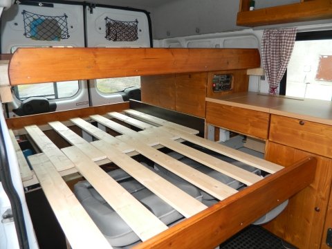 Letos jsem se konečně dostal ke koupi dodávky, která se mi šikla v super stavu od známého, který s ní jezdil jen čas od času na montáže a většinu času stála u něj ve stodole. Financí teď moc není, takže prozatím vybavení jen látám víceméně z toho, co kde zbylo. Kupoval jsem jen obyčejnou dřevěnou postel s matrací, kterou jsem uzpůsobil využití v dodávce.