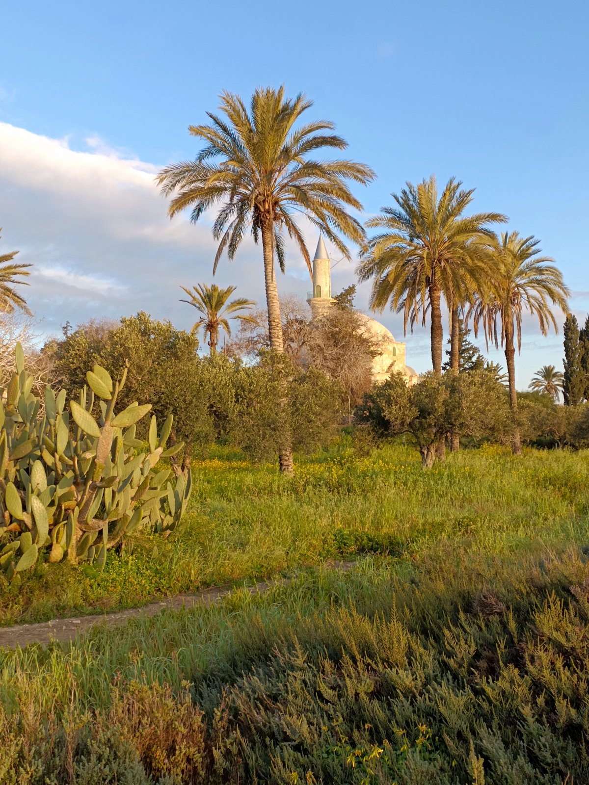 22.2. Den 1.- Před svítáním jdu pěšky z letiště Larnaka kolem solného jezera se záměrem navázat kontakt s plameňáky, kteří zde zimují. Je jich tu spousta, ale dost daleko na nějaké sbližování. Zato s kočkama si na Kypru můžete popovídat na každém kroku a už věřím, že je jich tady 5krát více než obyvatel. Ráno bylo 5°, kolem 8 hodiny už sluníčko pražilo a teplota stoupla ke 20°. Obcházela jsem celé jezero, kochala se pohledy po malebném okolí, zastavila se u mešity Hala Sultan Tekke a po cca 2hoďkách jsem došla k starověkému římskému aquaduktu Kamares. Odtud jsem už jsem směřovala k centru. Podél celého jezera vede hezká cesta, prošla jsem jsem Salt lake parkem a za 20minut byla u moře. Cesta s nelehkým batohem a hlavně s neustálými kochacími se zastávkami mi trvala téměř 5 hodin, tak jsem s radostí uvítala výbornou kavárnu hned u hradu a naproti mešitě Kebir. Kousek se nachází také kamenný kostel sv. Lazara z 9.st. Byl postaven nad hrobem sv. Lazara, který uprchl v r. 33 před pronásledováním na Kypr a právě v Larnace, (patří k nejstarším městům, 13stol. př.n.l.), se stal biskupem. Chvíli jsem se procházela v uličkách a podél pláže Finikoudes, kde se nachází stanice autobusu Larnaca Marina, odkud vyjíždějí pravidelně (překvapivě i přesně) autobusy InterCity do Nicosie, Agia Napy (co hodinu), na letiště (co 20 minut), Limassolu. 500m dále je potom hlavní stanoviště všech busů Městské dopravy. Městská doprava stojí vždy 1,50EUR, do Agia Napy 4EUR nebo zpáteční 7EUR.