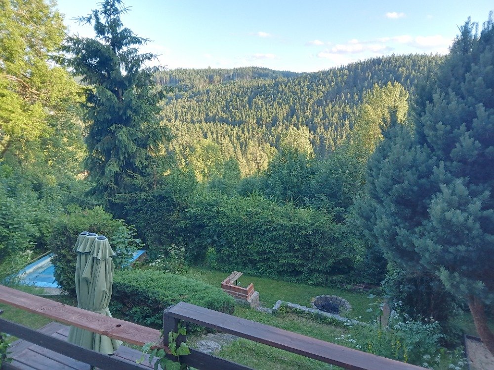 pohled na zahradu z okna