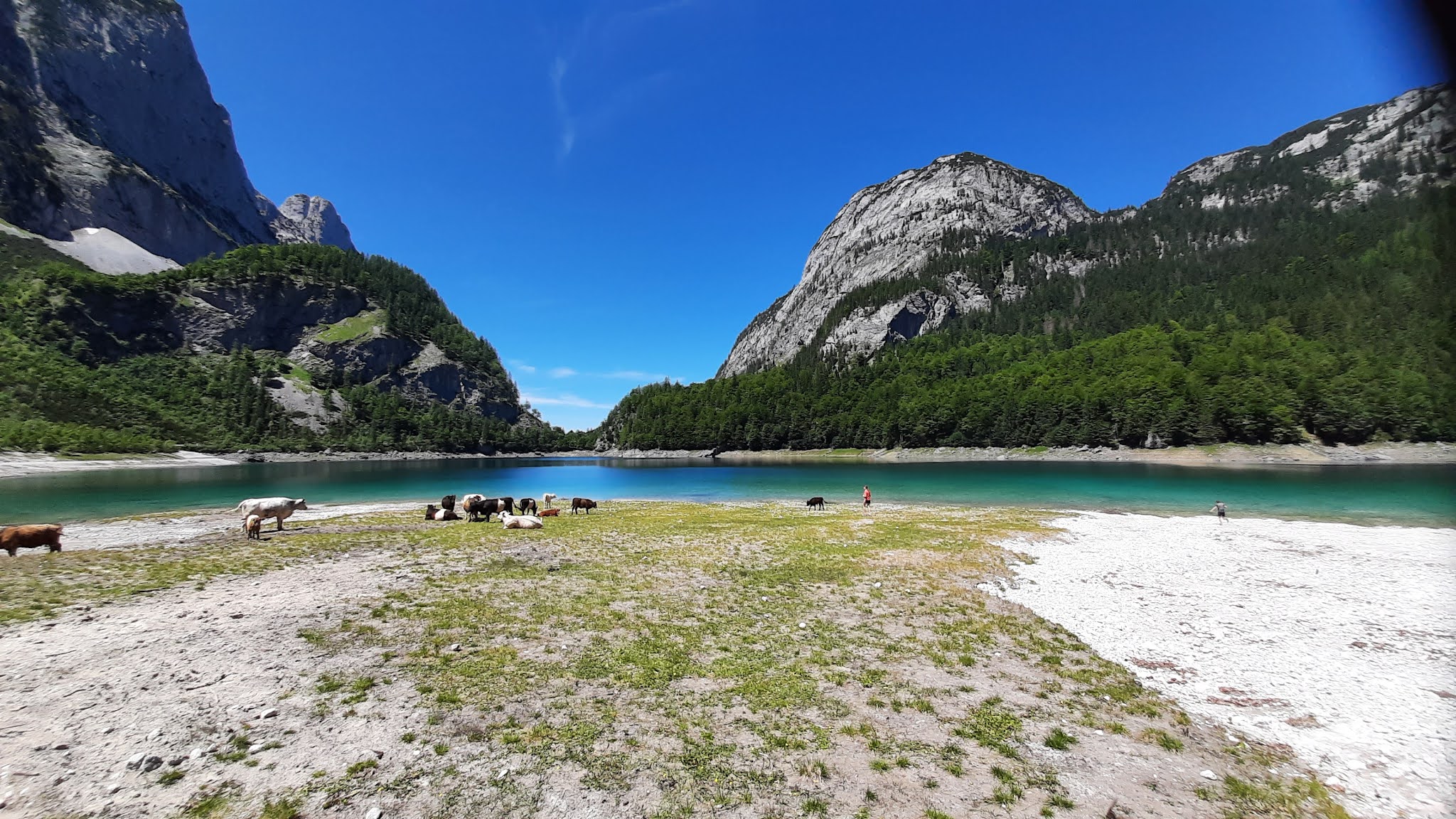 Bohatá snídaňka a vezmem kola, do kopce, z kopce, náhodou objevíme soutěsku Lammerklamm v a uzavřeme smyčku, dáme bobovou dráhu a vracíme se do Gosau. Spoludovolenkáři hlásí pozdější příjezd, tak ještě vyrazíme k dolnímu jezeru. Většina turistů se už vrací, nalézáme jezerní ferátku, vypadající zprvu nevinně, traverz nad vodou, poté prudce žebříkem nahoru a kolmá skála. Mladší dítko se pere statečně, bravúrně zvládne i následný lanový most, kde se tatík více třese.