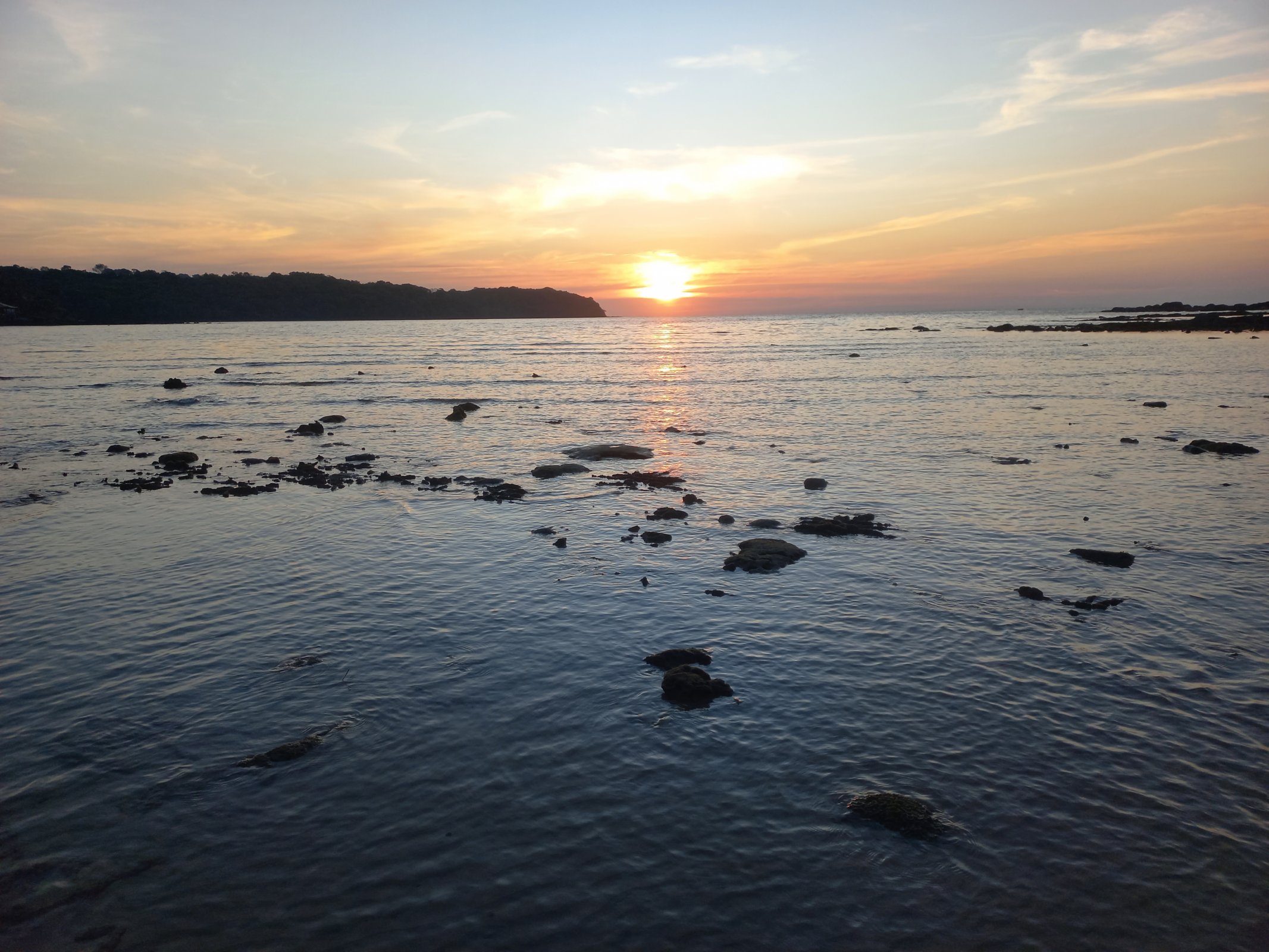 Zajedeme na menší krásnou pláž. Vypadá soukromně, ale nikdo nás nevyhazuje. Krásný jemný písek ocení Ondra, který v něm rovnou ryje kanály a listem, co si ulovil u vodopádu, jezdí jako lodičkou. Moře je velmi mělké, sem tam kameny. Pozorujeme rybičky, kraby a dokonce i chobotnici. Zavedu Ondru do vody. Nadšeně se tu potápí a řádí. Sluníčko zapadá, chceme popojít kousek po pláži, abychom viděli západ slunce nad mořem. Dá hodně práce s dětmi hnout... Chtějí tu zůstat.