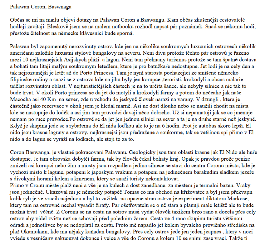 Diskuse a komentáře k Filipiny ostrovy Palawan Coron, Baswnaga Doprava info, potápění