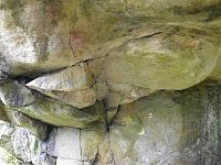 Dalším oblíbený „balvan“ je v v oblasti II s cestami označenými „Slunná“ a „Stinná“. Mají se lézt „ze sedu“, já jsem byl rád, když jsem je vylezl alespoň „ze stoje“. Pokud zde přijde někdo poprvé a nebude mít v paměti všechny možné i nemožné cesty, tak může být zábavou i vymýšlení směru kudy by se dalo… Přesně v těchto místech jsem poznal drsnost hrubozrnného pískovce, když jsem se snažil v rámci ještě „čistějšího“ vylezení o trochu těžším, ale přímějším směrem a nějak to nevyšlo – gravitace byla silnější. Poté už jsem „krávovinek“ nechal a pro ten den Liščím ďurám dal pokoj. No, popravdě úplně ne. Abych se vyhnul pocitu neúspěchu a pomalého vyvíjení se ještě většího strachu, tak jsem toto místo vylezl ještě jednou s jistějšími chyty, ale celkově ve vrcholové části ne tak elegantním pohybem. Strach jsem tedy odsunul na „někdy“ jindy a s poškrábanými rukami a trochu naraženými zády pokračoval do údolí potoku Mazák a nad mrazový srub na vrcholu Žár popsaný zde: