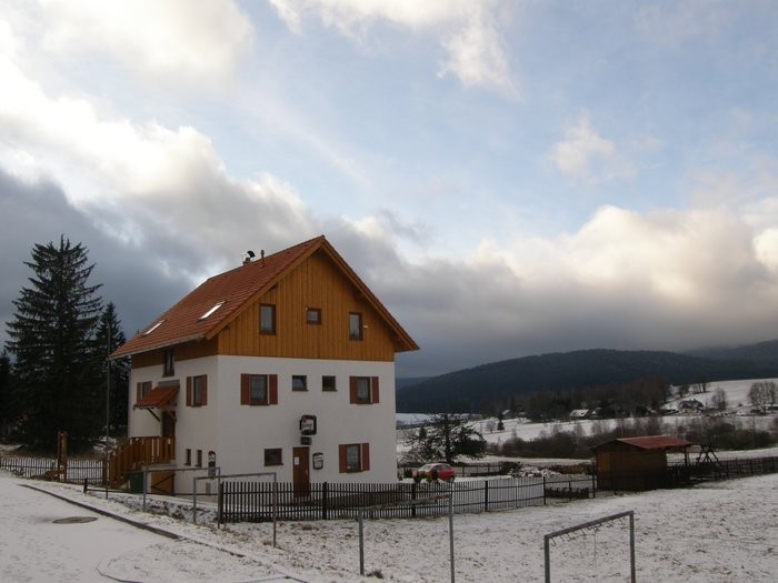 Místo, které bych rád doporučil, jako ideální pro strávení volných dní na Šumavě, je jen kousek od středu obce. Stačí obejít řadu bytovek a stojíte před pensionem Šumava. Ač téměř ve středu obce, přesto stojíte na místě, které svou polohou a výhledem patří ktomu nejkrásnějšímu, s čím se můžete na Šumavě potkat. Jednoduché, ale přitom účelné a vkusné vybavení interiéru, Vás přivítá hned u vchodu. Stejná jednoduchost a účelnost, ale zároveň pečlivá čistota, Vás čeká i na pokojích, přičemž příslušenství a satelitní TV je součástí každého buď dvoulůžkového nebo čtyřlůžkového pokoje. Parkování pro Vaše auto je tu samozřejmě připraveno, stejně tak jako prostory pro vaše kola nebo lyže.