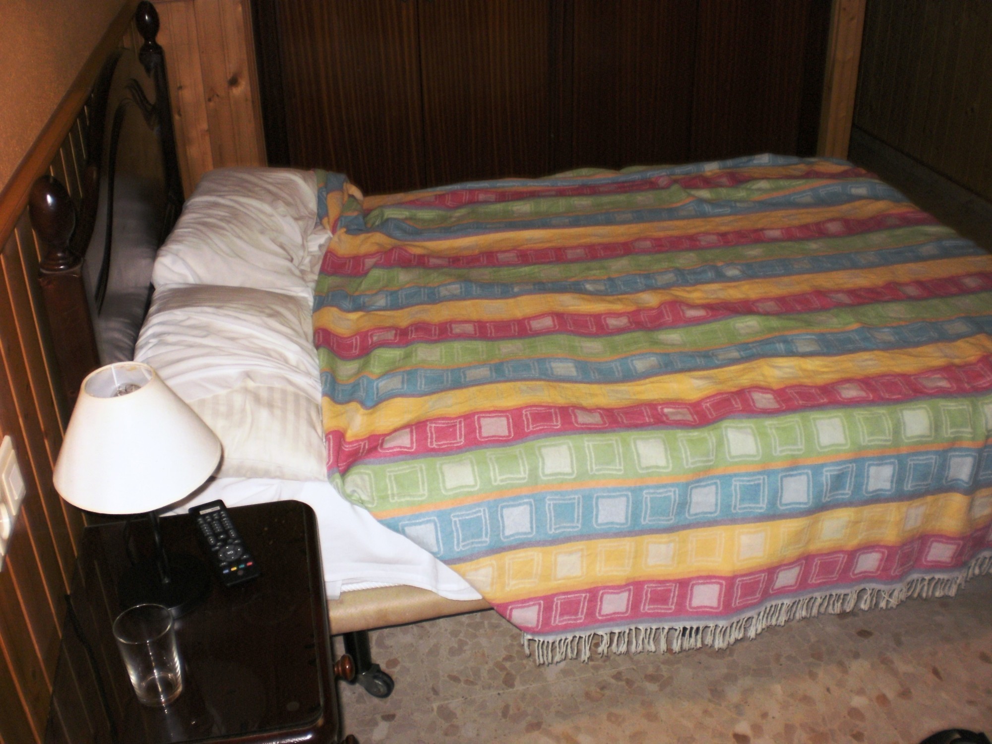 Nocleh přes internet stál pro jednoho 20 EUR ve dvojlůžkovém pokoji (ovšem byl jsem tam všechny noci sám) a 16 EUR pro jednoho v případě obsazení celého pokoje. Pokoje jsou dvoulůžkové, s předsíňkou, sprchovým koutem a WC. Dole je recepce, bohužel v angličtině velmi krkolomně dorozumitelná ale nakonec se to zvládlo. Výhled jsem měl jednu noc na terasu uvnitř bloku, na jejímž konci byla zeď se třemi průtokovými ohřívači. Další noclehy jsem pak měl doplněné balkónkem, ze kterého byl výhled na náměstíčko, kde dopoledne byl trh a večer tam kluci kopali balónem (Španělsko se prostě nezapře).