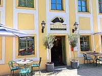 Dům zde stojí patrně od roku 1723, jak je napsáno nad vchodem. Od kdy se na ulici Schlossallee nachází stejnojmenná restaurace nevím. Vím však určitě, že zde mají vynikající frappé, což je v Německu vzácnost. Většinou tomu názvu nerozumí a nabízejí ledovou kávu se zmrzlinou. Určitě v této řecká restauraci také dobře vaří, což jsme mohli pozorovat okolo sebe.