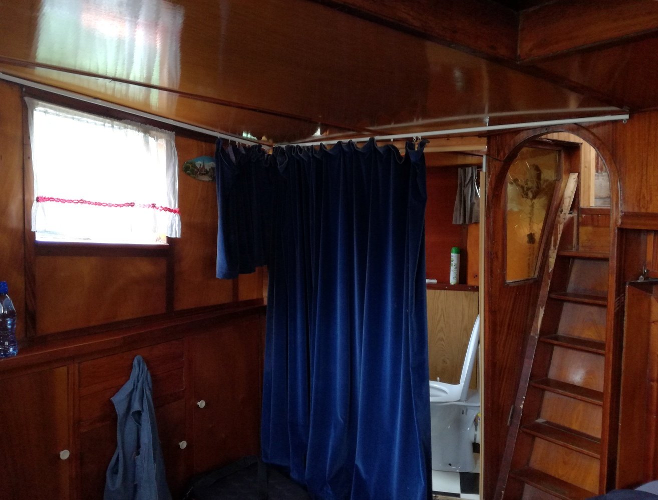 Hledali jsme tedy nějaký privát nebo hostel blízko a zas ne tak drahý. Náhodou jsme našli ubytování na "lodi". Když říkám na "lodi" tak nemyslím nějaký blbý moderní hauzbót, ale starou nákladní loď s vestavěným skromným ubytováním. Dva dvoulůžkové pokoje, přístup po žebříku ale splachovací záchod a sprcha nechyběly a fungovaly. Ráno nás budil kohout, kolem lodi šplouchaly divoké kachny a volavka na lovu si nás vůbec nevšímala i když jsme ji fotili zblízka. Snídaně na lavičce na palubě nebo vedle v parku. Prostě romantika.