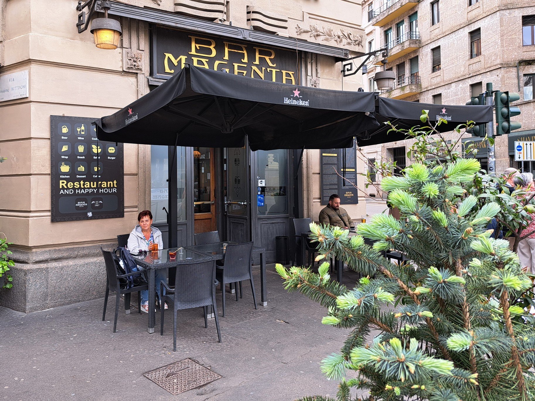 Ve městě Milano jsme navštívili zajímavý podnik, který se nachází na ulici Via Giosuè Carducci 13. Jmenuje se Bar Magenta a nabízí nápoje i občerstvení. Personál je tam příjemný, ceny normální a výběr široký. Venku je také posezení.