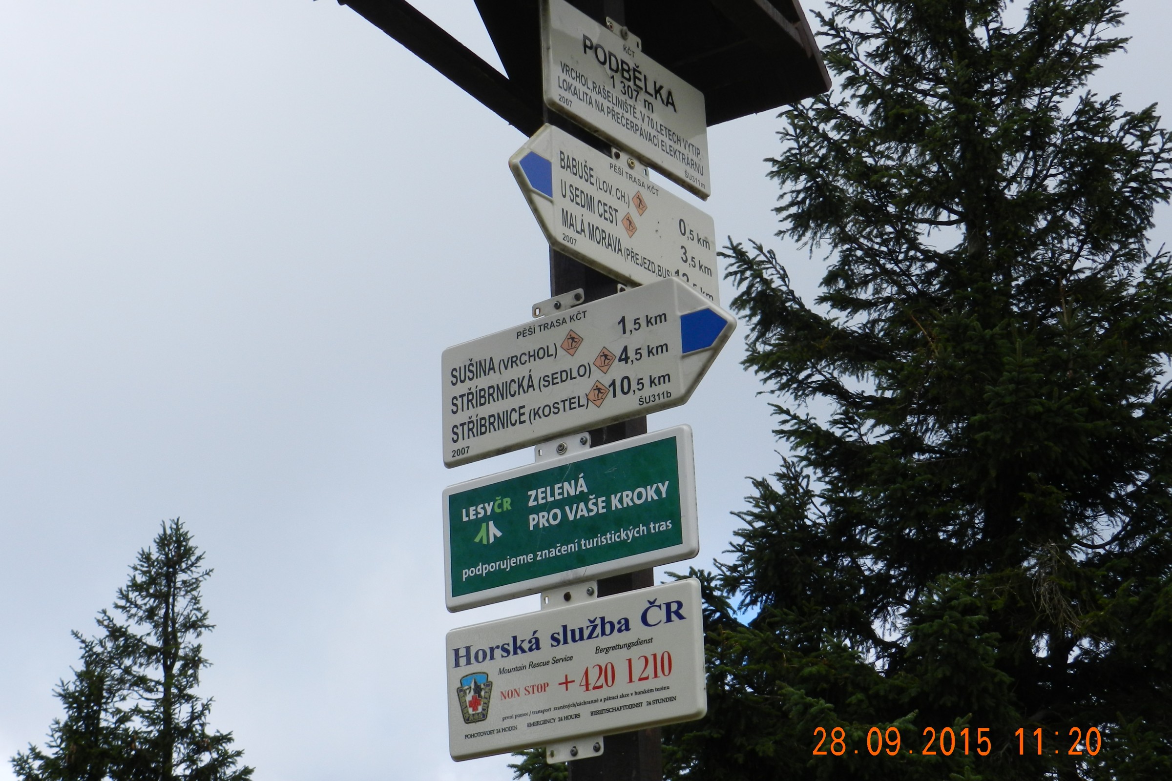 Podbělka je vrcholem s nadmořskou výškou 1307 m a najdete jej mezi lov.chatou Babuše a vrcholem Sušina. Také na tomto vrcholu, také již od lov.chaty Babuše a pak směrem na Sušinu najdete několik bývalých betonových bunkrů. Nic v nich není, ale stojí za shlédnutí. A přímo pod rozcestníkem si můžete ze schránky vylovit knihu návštěv, kterou provozuje KČT a napsat pár slov...
