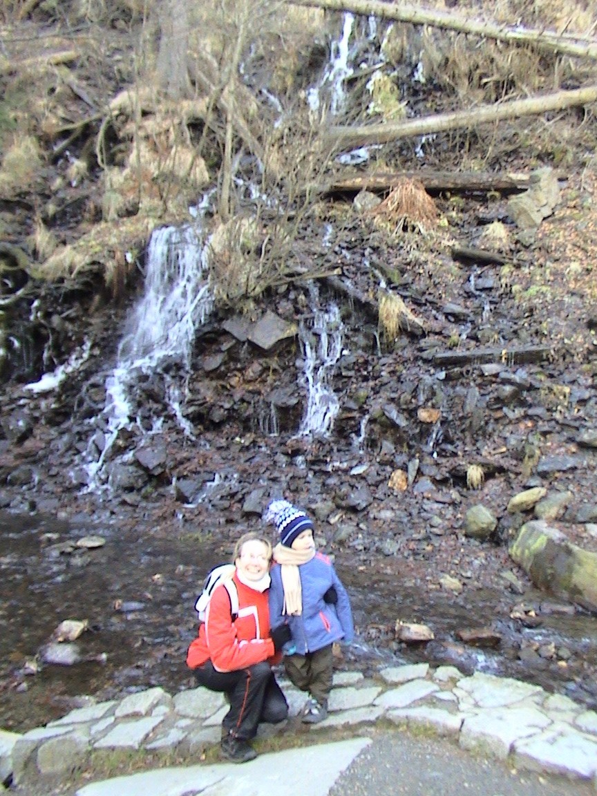Můžete zaparkovat os.auto na dvou místech,buď na horním parkovišti 30Kč/1 h. (u býv.restaurace Hubertus) nebo na dol.parkovišti za stejnou cenu. Na dolní parkoviště musíte ale projet celou Karlovou Studánkou. Vcentru se stejně nedá parkovat,všude je zákaz stání. Když zaparkujete na hor.park.,tak projděte celé parkoviště dozadu za dřevěné občerstvení a po schodech dolů. Naskytne se vám pohled na vodopády Karlové Studánky, kde si prameny vody razí cestu přes balvany a spadané kmeny stromů. Můžeme se dát vpravo po cestičce procházkou do centra kolem dřevěných stavení,ale nechoďte mimo trasu,jinak se propadnete do potůčku,který je zadělaný listím a tudíž nenápadný. Syn nám tam „zahučel" po kolena,ale nic hrozného a díky paní, co hlídá parkoviště jsme si výlet prodloužili o hodinku navíc za cenu hodiny. Bylo jí nás líto,že nám tam syn spadl a právě ona nás varovala,že raději po cestičkách! Asi tak vprostředku mezi dol. a hor.parkovištěm se nachází pitný pavilon,kde si můžete pro svou potřebu cca 5 l na osobu nabrat léčebnou minerální vodu. Přednost mají ale pacienti lázní. Když jsme tam byli my 13.12., tedy mimo sezonu, tak tam nebyla ani noha. Směrem od pit.pavilonu u cesty je nově zřízená meteorolog.stanice, která ukazuje nejen teplotu,ale také barometrický tlak a sílu větru. Dále můžete navštívit rozlehlý parčík,kde jsou opět potůčky a mini vodopád. Hned naproti je vidět léčebna,kde byl ubytován V.Havel.