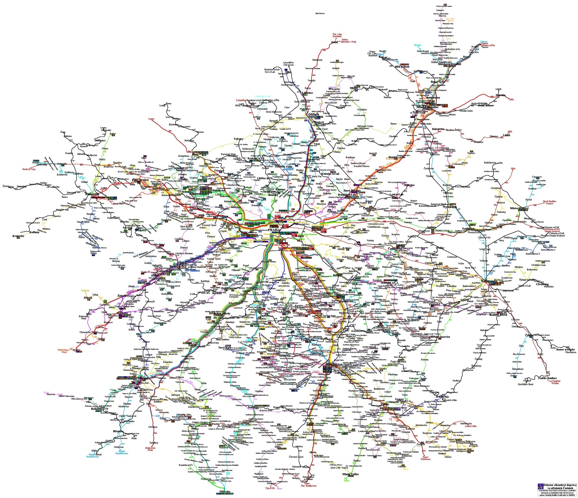 Na níže uvedeném odkazu najdete schema veřejné hromadné dopravy v oblasti středních Čech o víkendech. Jeho cílem je usnadnit orientaci ve veřejné hromadné dopravě (v tomto případě hlavně nepravidelným cestujícím, kteří ji využívají ve větší míře ve dnech volna) a zároveň popularizovat hromadnou dopravu nejen při turistice.
