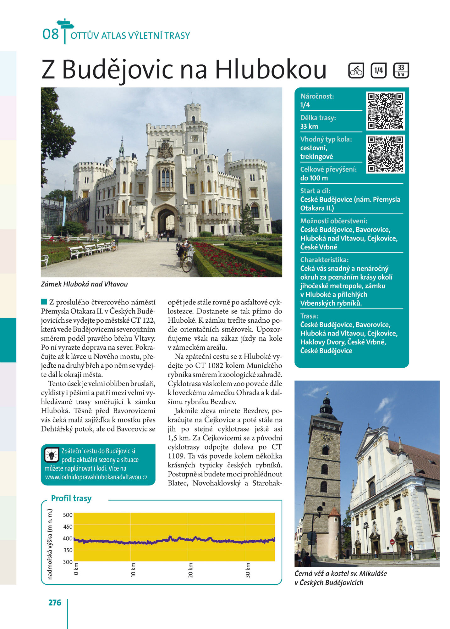 Unikátní průvodce Českem se dělí na několik turistických oblastí. U každé z nich nabízí více než dvacet pěších a cyklistických výletů s popisem nejvýznamnějších přírodních a historických památek. Nechybí ani užitečné kontakty, podrobné mapky a fotografie přibližující atmosféru kraje. Atlas je vylepšený o QR kódy, které umožňují načíst údaje o trase do navigace či chytrého telefonu.