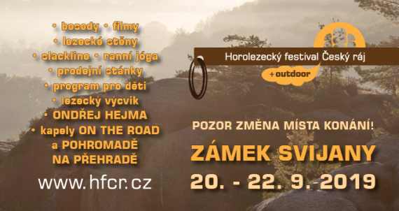 Od pátku 20. 9. do neděle 22. 9. 2019 bude areál zámku Svijany otevřený všem milovníkům horolezectví, outdooru, turistiky, přírody a dobré zábavy. Koná se zde totiž Horolezecký filmový festival Český ráj