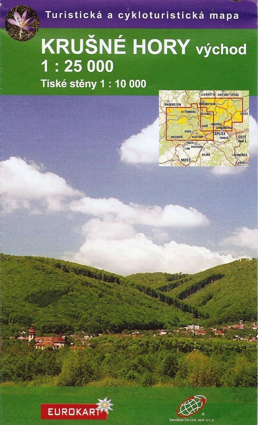 V polovině srpna 2010 byla uvedena na trh nová podrobná turistická a cykloturistická mapa 1:25 000 Krušné hory-východ. Toto turisticky velice atraktivní území je zobrazeno na oboustranné mapě a s mírným překrytem rozděleno na jihozápadní a severovýchodní část. Nejzápadnějším bodem na mapě je Český Jiřetín, nejvýchodnějším obec Modrá u Děčína. Nejsevernějším místem je okraj obce Petrovice při státní hranici a nejjižnějším místem na mapě pak město Osek. Dále je zde v měřítku 1:10 000 podrobně zobrazeno území Tiských stěn. Mapa je k dostání ve všech informačních centrech oblasti a vybraných knihkupectvích. Její cena byla stanovena na 89,- Kč. Vydala ji jako ostatní mapy tohoto měřítka Geodézie On Line z České Lípy (www.geodezieonline.cz).