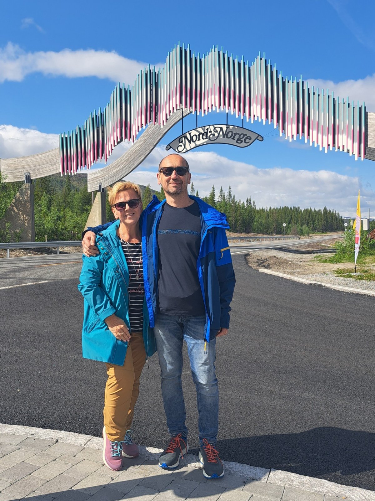 Kousek za městečkem Namsskogan překračujeme slavnostně 65. rovnoběžku. Další významný milník v naší cestě na sever.