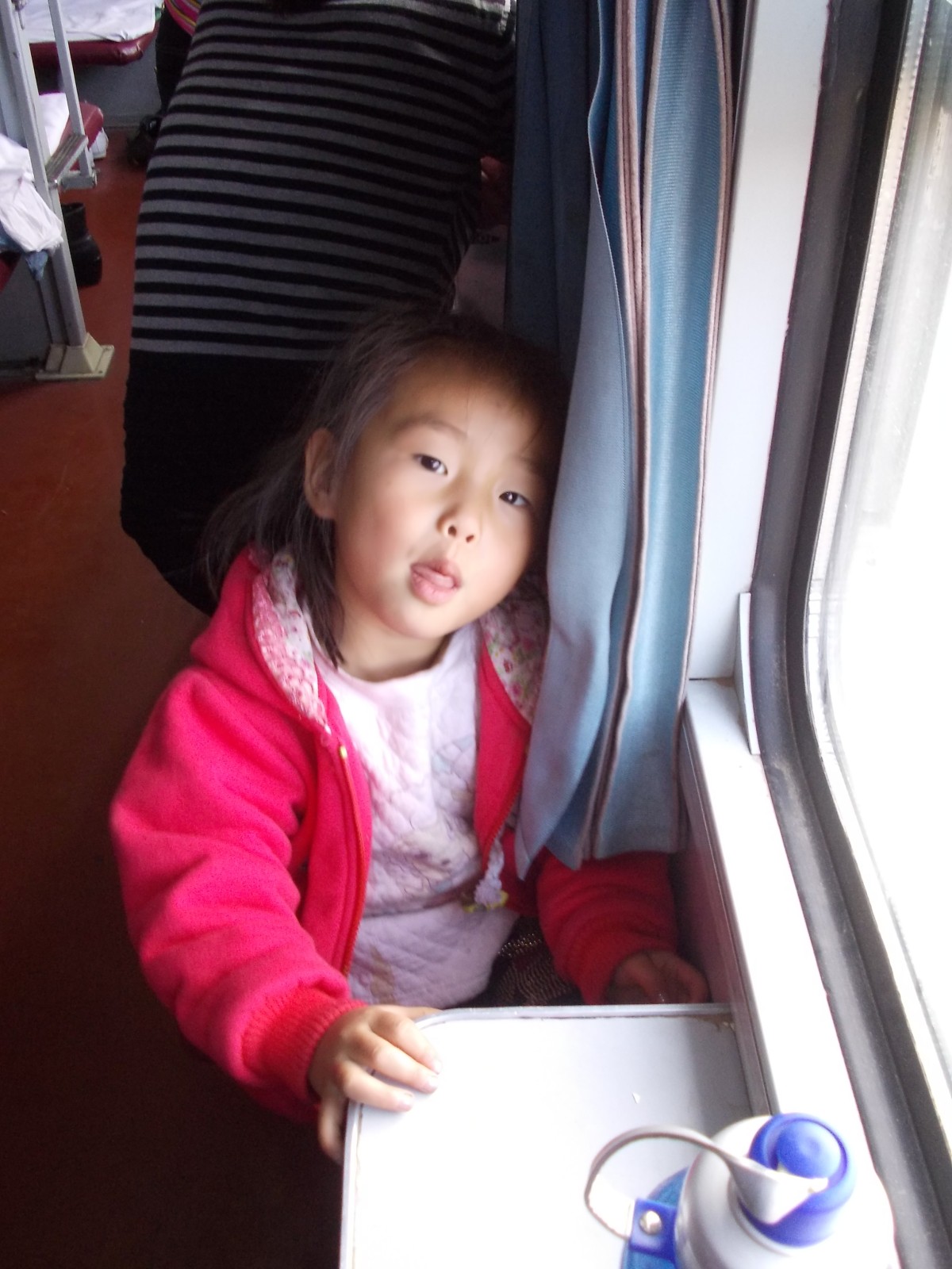 Jsem si užil 3 krát. Cesta trvá mezi 25 až 26 hodinami. Vlak jezdí třikrát deně. Lístek můžete pořídit od 16 USD za sezení a nebo za lůžko 33 až 54 USD. Já bych doporučil střední třídu, to je hard sleaper úplně nahoře kde vás nikdo nebude otravovat. Na lůžku máte připravený polštář a deku, takže se nemusíte obtěžovat s vlastním spacákem. Vlakem frekventovaně prochází obsluha s občerstvením, v nabídce jsou instantní čínské polívky, ovoce, ne alko a myslím, že v nabídce bylo ohřáté jídlo něco jako rýže se zeleninou a kuřecí maso. Jíst se to dá, ale taky si můžete koupit instantní polívku v obchodě a v každém kupé jsou termosky s vařící vodou a tou si tu polívku zalijete. Jak jednoduché:-). Z vlaku je nádherný výhled na Hory Ťan Šanu a občas i velblouda zahlédnete.