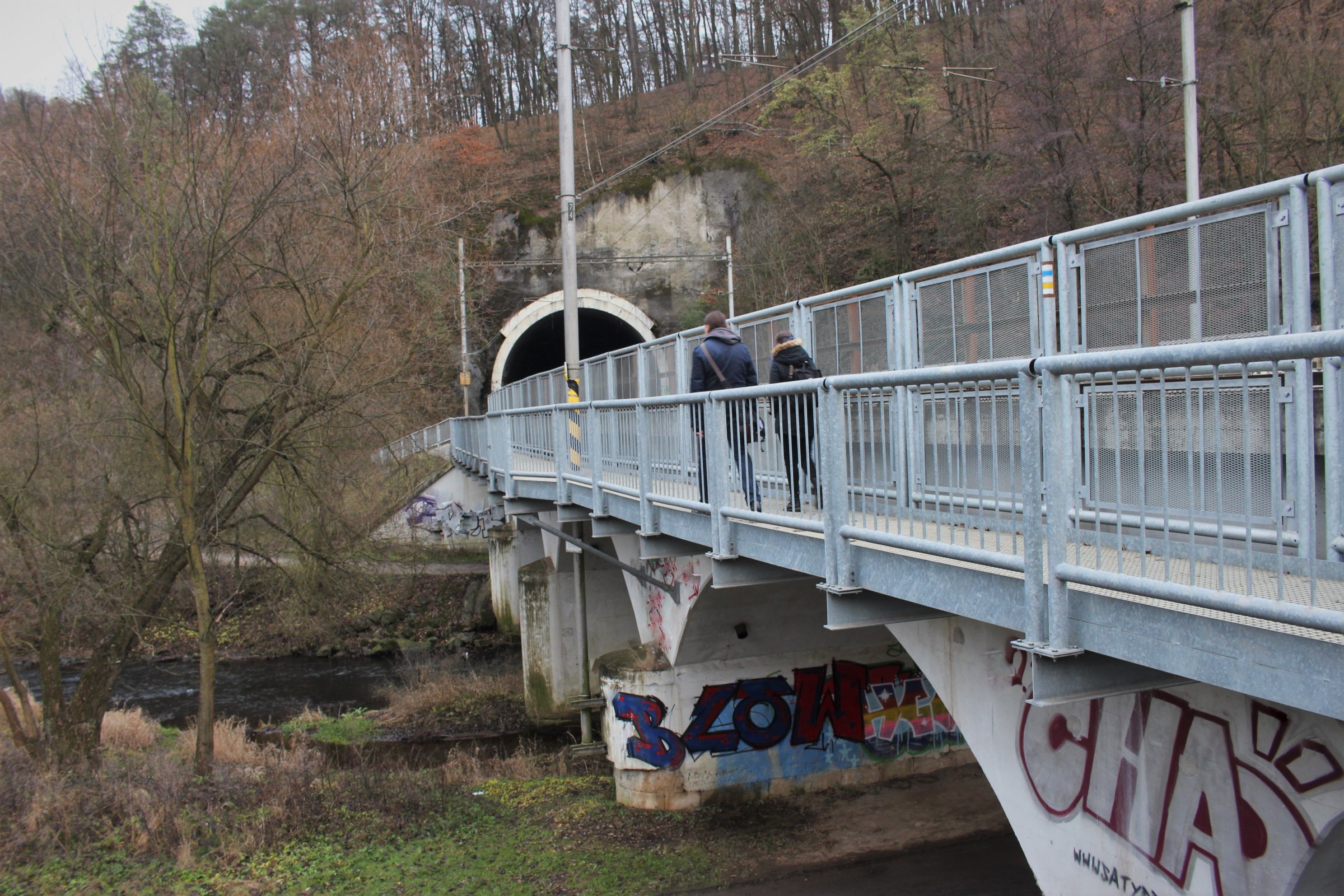 Přechod lávky ze strany od tunelu