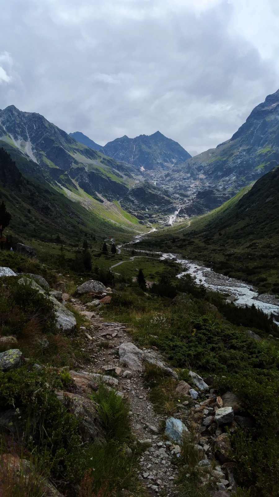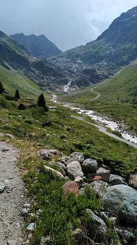 Stejnou cestou se vracím zpět k chatě Gletscherstube a po cestě Mittelbergweg E5 se vracím zpět do Mittelbergu.