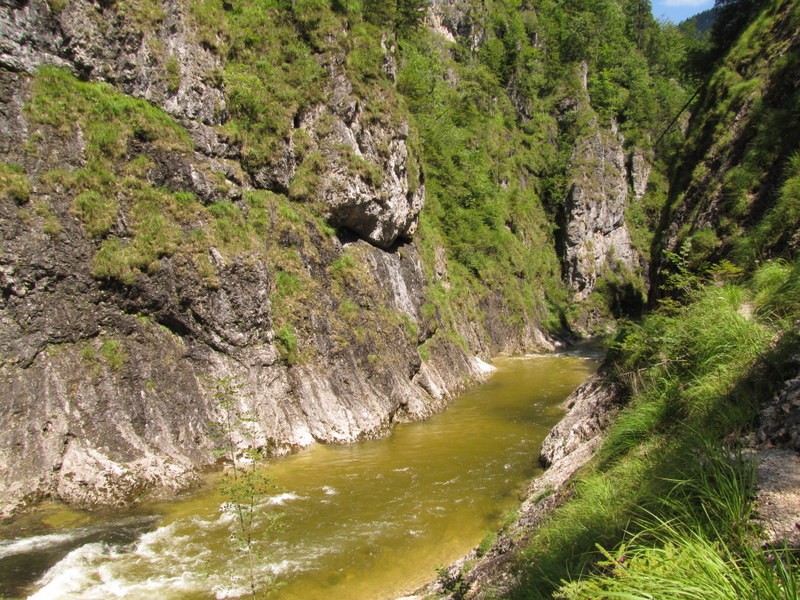 Část cyklo je velmi jednoduchá trasa, která mírně stoupá kolem řeky. Postupně se údolí zužuje a mění na kaňon. Krásné a velmi úzké místo je v místě Grosse Klause, kde řeka je sevřena kolmými stěnami a cesta je vedena tunelem. Kousek za tímto místem je jediné místo (Klausehutte) v kaňonu, kde je možné dostat malé občerstvení. U dalších tunelů jsme sesedli z kol a dále pokračovali pěšky po zajištěném chodníku Trifsteig kolem řeky a pak k vodopádu Schleierfall a odtud zpět po cyklostezce zpět ke kolům. Dále se vracíme dolů až k odbočce do Brunnbachu.