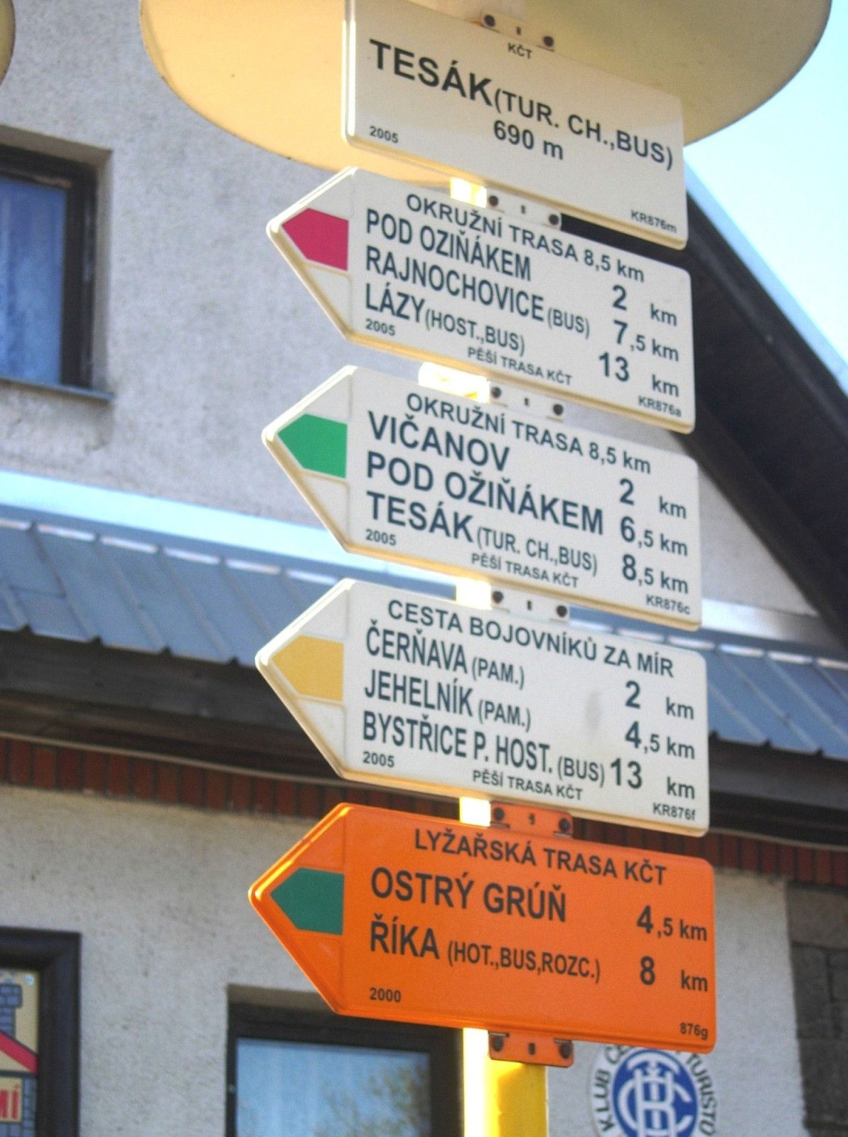 Turistické známky na trase - Tesák, Lukov, jakož i na případném pokračování - Lešná, Štípa, bezproblémově k získání.