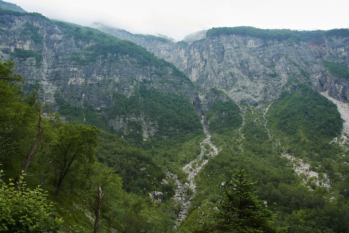 V lůně vrcholů Mahavšček, Tolminski kuk v mokřadu planiny Pod Osojnico se poklidně rodí řeka Tolminka.