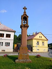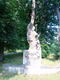 Sloup nechala postavit Anna Marie Toskánská a vznikl r. 1729. Ještě 20 let po svém vzniku nebyl posvěcen. Podstavec a těleso jehlanu zdobí sochy 14 pomocníků ( Sv.Jiří, Kryštof, Blažej, Diviš, Achacius, Cyriak, Erasmus…