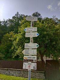 Šipky rozcestníku stojícího u silnice před železniční zastávkou Kácov upřesňují směr červeně a modře značené trasy. Červená trasa sem z jihovýchodu přichází ze Zruče nad Sázavou a pokračuje dál po proudu řeky Sázavy k Českému Šternberku. Modře značená turistická trasa vede ke Kácovu ze Zbraslavic přes Čestín a spojuje kácovskou železniční zastávku s železniční hlavní stanicí…