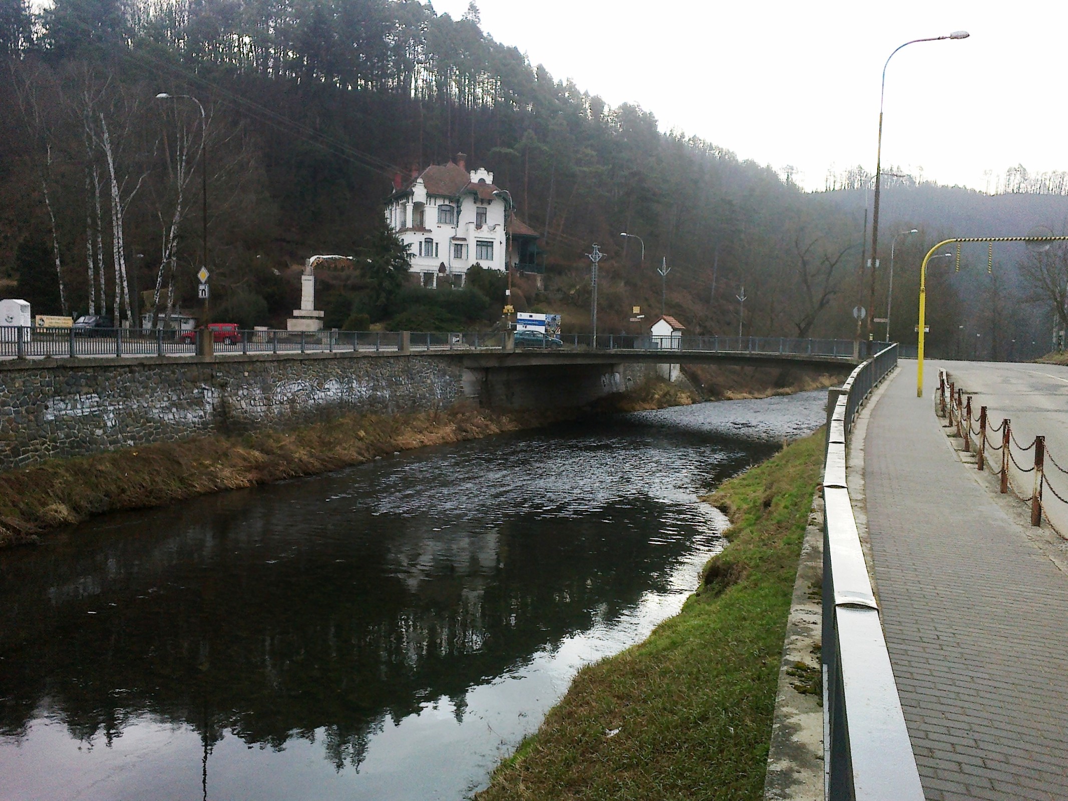 A je tady Maloměřický most a s ním končí jakás – takás idyla kolem řeky. Za mostem začíná stará průmyslová zástavba, napřed na pravém břehu, brzy na levém břehu končí ulice rodinných domků Baarovo nábřeží a začíná neutěšený pohled i zde. Po levém břehu areál Zbrojovky, po pravém Vozovna DPMB a ještě další, následují Husovice, známá to brněnská čtvrt s velkým podílem méně přizpůsobivých. Domy jsou sice opravené, ale hloučky hnědočechů napoví…