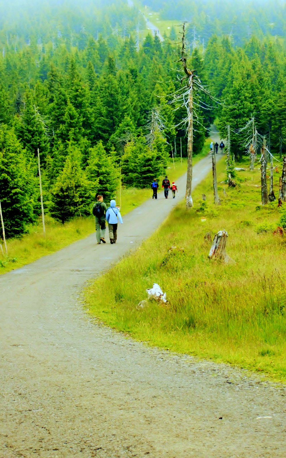Zpátky buď po stejné trase, zelená,červená, nebo si výlet prodloužit a po žluté nahoru na Petrovu boudu (0,5 km).
