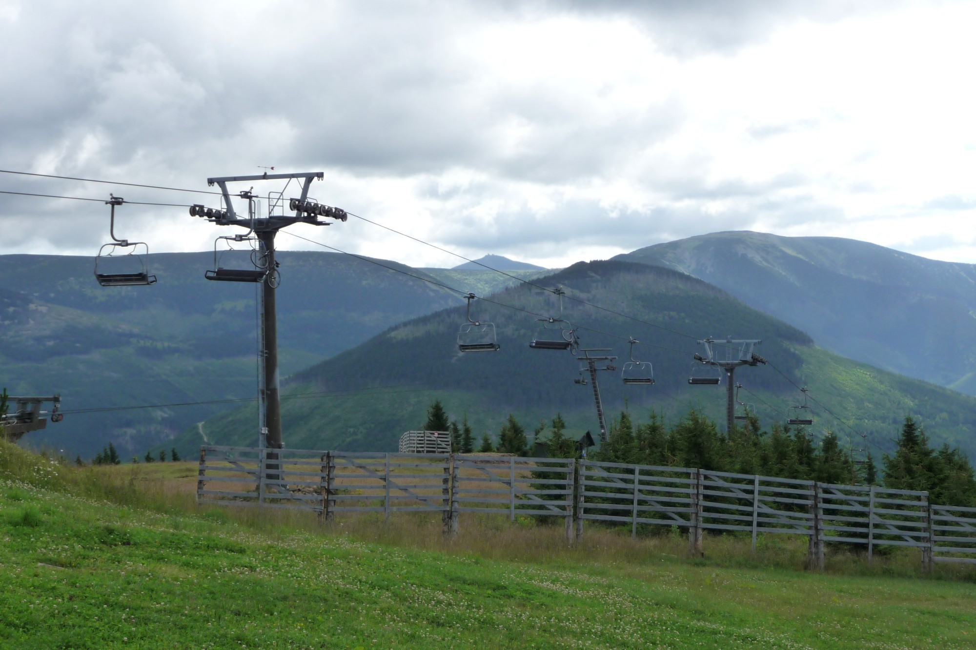 Z centra Špindlerova Mlýna vyrážíme proti proudu Labe a směřujeme k dolní stanici lanové dráhy na Medvědín, odkud se necháme sedačkovou lanovkou vyvézt k vrcholu Medvědína. Dále pokračujeme po žluté značce podél S…