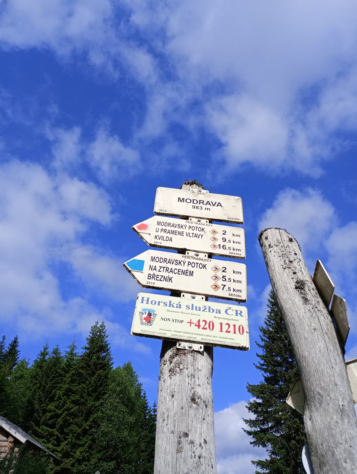 Trasa vedoucí od rozcestníku naproti modravskému Dřeváku vás vyvede po červené značce až k rozcestníku Modravský potok , odsud následuje táhlejší stoupání k rozcestníku Černohorská nádrž. Odsud malá spojka k rozcestníku Nad ptačí nádrží, dál pak další táhlé stoupání k rozcestníku nahoru k Černé hoře. Po stoupání následuje klesání až k pramenům řeky Vltavy ( možnost turistického sezení )