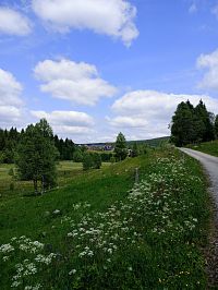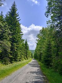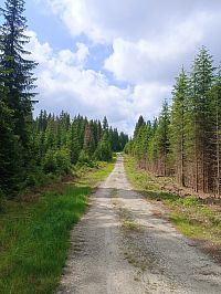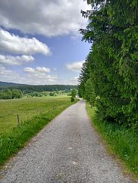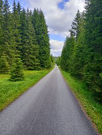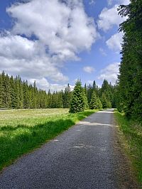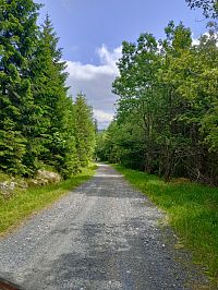 Odsud pozvolna po lesní asfaltce krásným terénem po modré značce až na Kvildu.