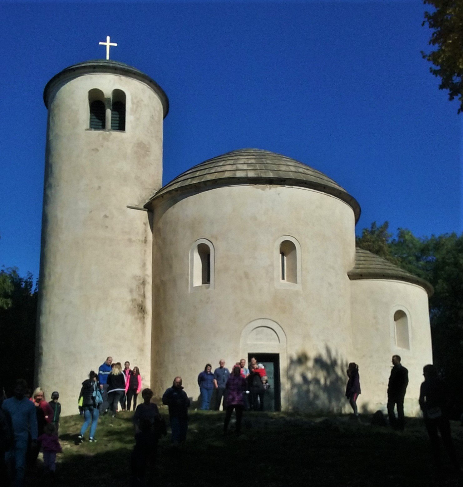 Při návštěvě dcery v Praze jsme uskutečnili i výlet na bájemi opředenou horu Říp. Auto jsme odstavili v malé obci Ctiněves poblíž vlakové zastávky a výstup podnikli po červeně značené turistické cestě. Cestou jsme minuli upravený pramen Hamlouf, na kraji lesa jsme nejprve prošli po traverzové cestě až k rozcestí Pod Řípem. Odtud už trasa strmě stoupá k vrcholu, cestou míjí Pražskou vyhlídku a pak už směřuje k vrcholu k turistické chatě. Od ní už je pouze kousek k rotundě sv. Jiří, která je národní kulturní památkou. Ta byla původně zasvěcena sv. Vojtěchovi. Patří mezi nejstarší dochované stavby v Čechách. Bohužel přesný datum jejího vzniku však není znám. Ví se jenom, že ji v roce 1126 nechal opravit a rozšířit kníže Soběslav I. Jedna z posledních přestaveb byla v 70. letech 19. století. Tehdy byl proražen jižní portál, byla zvětšena okna a rotunda dostala hladkou venkovní omítku. Poslední stavební úpravy pak proběhly v 60. letech 20. století. Tehdy bylo požadováno stavbu romanizovat. Okenní otvory byly opět zmenšeny a vybaveny replikou románského ostění, jižní portál byl zbourán a vybudován v novorománském slohu. Opuková dlažba byla nahrazena pískovcovou. Současný stav je z roku 2009, kdy byla rotunda opět omítnuta.