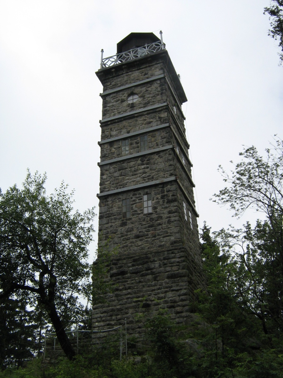 Proto se rozhodla tehdejší Nejdecká krušnohorská jednota postavit na skále velkou kamennou rozhlednu. Také proto, že velké úspěchy měly vyhlídkové věže na Klínovci (z r.1884) a na Plešivci u Abertam (z r.1895). Věž se začala stavět v červenci roku 1895 a byla dokončena v září 1897. Půdorys stavby tvoří čtverec o straně 5 metrů. Zdi věže dosahují síly 1,3 metru. Výška rozhledny od prahu vchodu až po špičku bleskosvodu činí 18 metrů, což je více než měří rozhledny na Klínovci a Plešivci. Na vyhlídkovou plošinu vede točité schodiště o 114 žulových schodech. Věž zvyšuje 3 metry vysoký prosklený přístřešek s třímetrovým bleskosvodem. Celá stavba, od prahu vchodu až po špičku bleskosvodu tedy měří 24 metrů. V roce 1908 byla k rozhledně ještě přistavěna stylová výletní restaurace, čímž se turistická atraktivnost vyhlídky ještě zvýšila. Slavnostní otevření restaurace se konalo 7. června 1908.