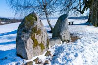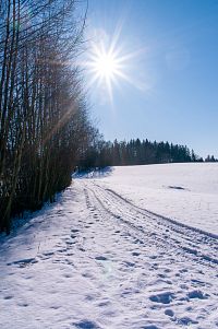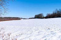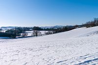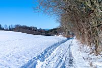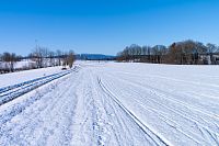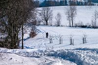 Musím dodat, že polní cesty jsou tu rozježděné traktorem a nějakým teréňákem, jak to zmrzlo, tak je ten pohyb poněkud klopýtavý, bo zmrazky připomínají poněkud kamenitou cestu. Když to tedy jde, tak raději po kraji cesty nebo po poli, ale občas jse zase sníh hlubší a boří se, kde je nafoukáno.