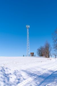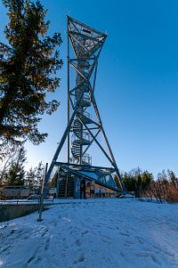 Po té i ta nadhledna, vzal jsem to po kraji sjezdovky (abych dodržel zákaz vstupu na svah), on je ten svah celkem široký, ale řekněme že sjezdovka není tam, kde nestojí sněžná děla, tedy za nimi. Zhruba v půli svahu prochází výše již zmíněná žlutá tras, tak díky ní obejdu vrchol koce a k nadhledně je to tak trošku zezadu.