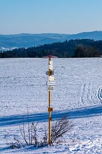 | Výměna žluté TZ za Modrou, chvíl po asfaltu, dál polní cesta | ||||